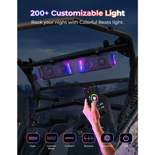 33 Inch 8-Speaker RGB UTV Bluetooth Sound Bar for 1.75''-2.25'' Roll Bar