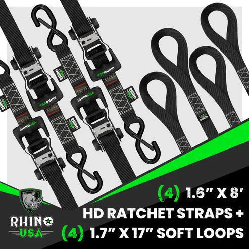 1.6" x 8' Heavy Duty Ratchet Tie-Down Set (4-Pack)