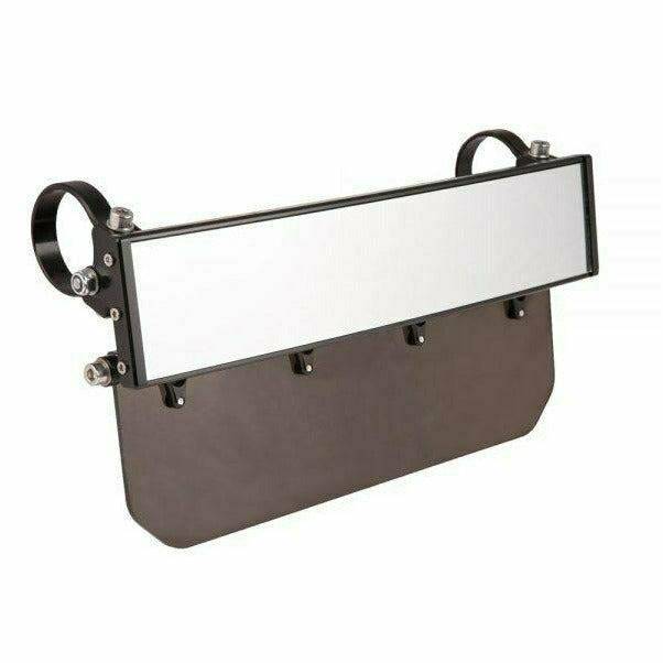 The Axia Alloys 12″ panoramic mirror is a game changer for the cockpit of your vehicle. Intended to mount directly in front of the driver or copilot, this mirror has a solid black sun visor that folds down to block that blinding sun.