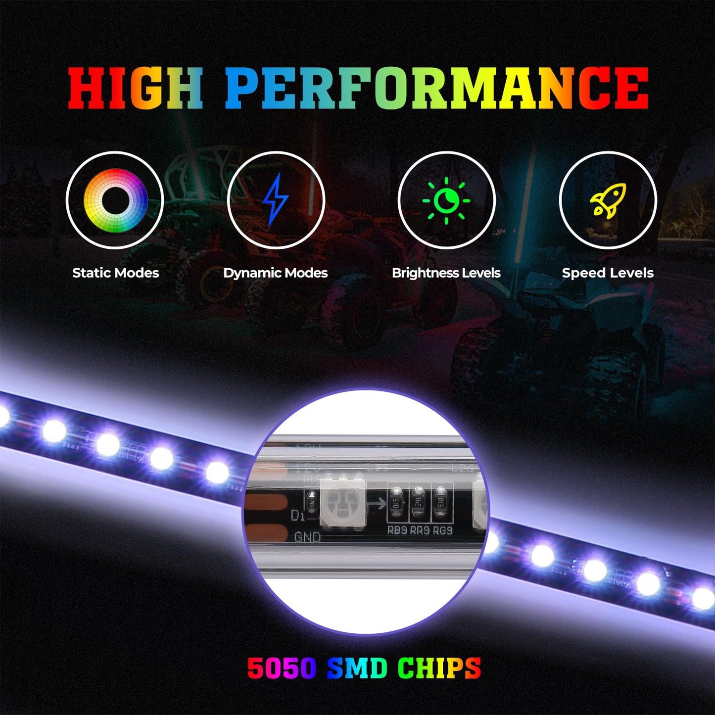 Number of LEDs Per Whip Lights: 96 pcs-3ft, 132 pcs-4ft