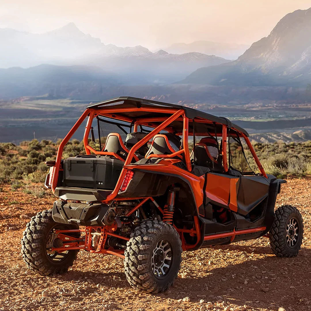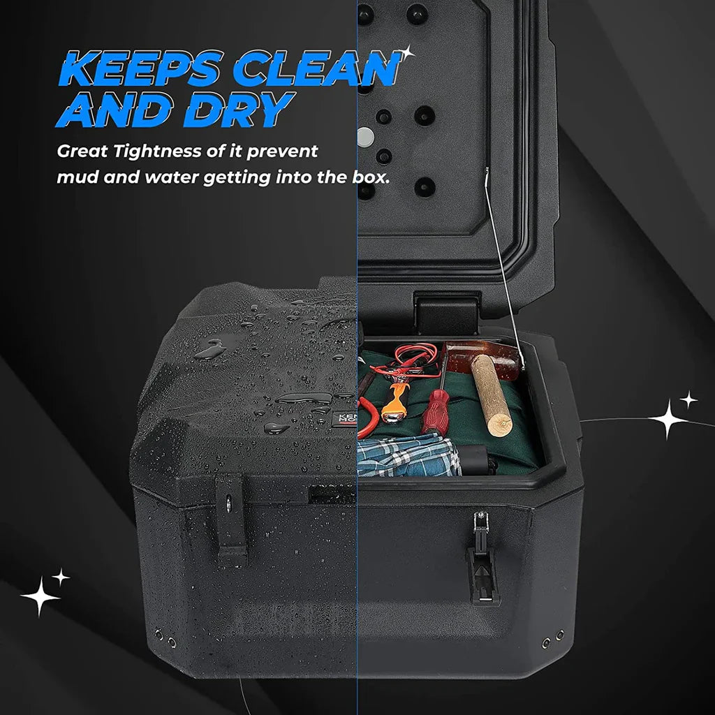 | Large Capacity This box is designed for maximum storage space. 56L for storing clothes, maintenance tools, gloves, binoculars and other items. Only a box can meet your most storage demand. Good Sealing The cargo box is designed with good sealing performance, which prevents dust, mud, rain and snow getting into the box. So the box is helpful for you to keep things dry and organized. Extra Storage The special design at the top of the cargo box can help you easy to store a gasoline pack, provide extra storage space and can withstand pressure/drag of 20kg bound items. Easy to install Without drilling, you just need to screw the bolts to tight the accessory box. And the storage box will fit tight and stable on a bumpy road. SKU: B0113-11001BK Fitment Honda Talon 1000X: 2019-2022 Honda Talon 1000R: 2019-2022 Honda Talon 1000X-4: 2020-2022 |