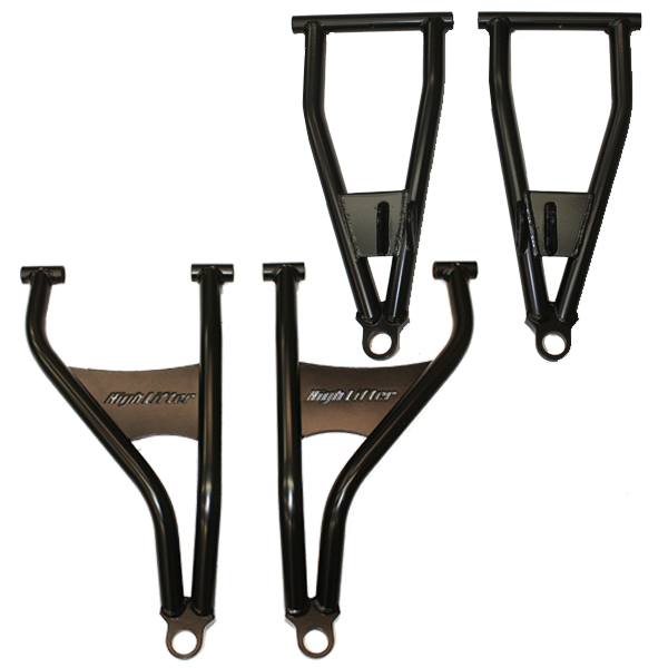 Our arms maximize ground clearance by strategically arching the lower control arms while following the angle of the axle for maximum clearance, axle protection, and visual appeal. Don't be fooled with too much arch that puts your axles into greater risk of damage. Our precision manufacturing process ensures each control arm installs exactly like the factory arm. Depending on the model, most kits will have the High Lifter logo precision cut into the bracing.