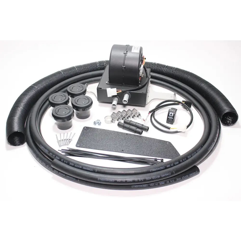 - Includes all necessary components: heater hose, hose splicers, hose clamps, mounting brackets, defrost and floor louvers, ductwork & wiring.