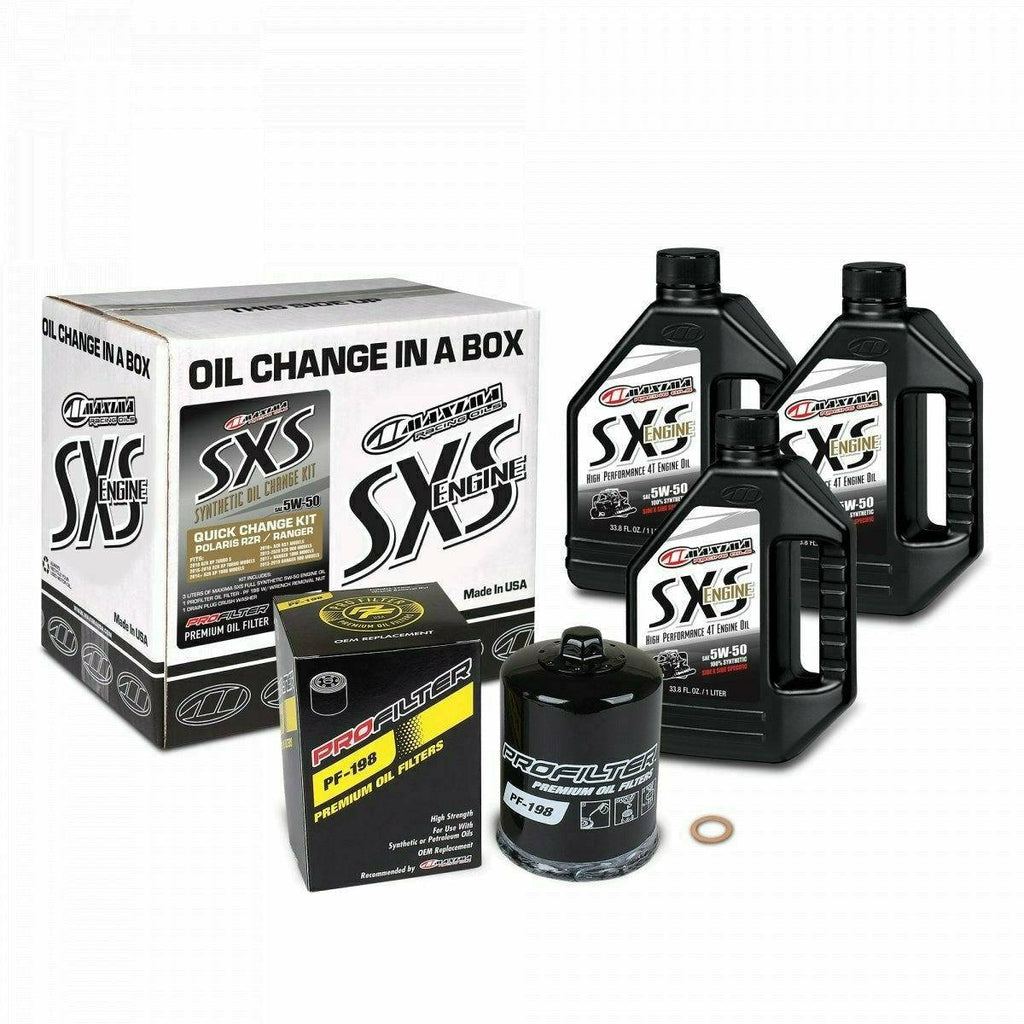 Includes: 7 Liters of Maxima SxS Full Synthetic Engine Oil, 1 Premium ProFilter Spin-On Oil Filter (PF-198), 1 Drain Plug Crush Washer