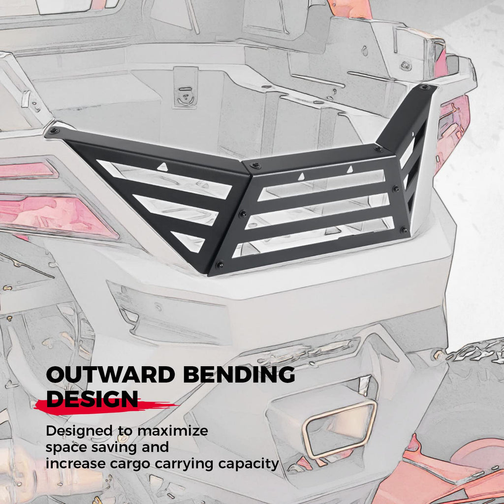 The outward bending design will maximize space saving and increase cargo carrying capacity. This PRO R rear cargo bed enclosure carry more accessories and items during off-road riding makes your travels more worry-free and convenient. Getting you into off-road mode faster.