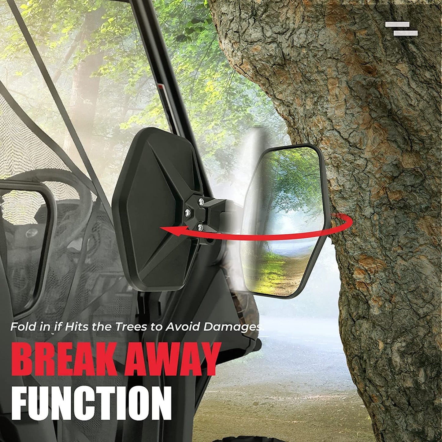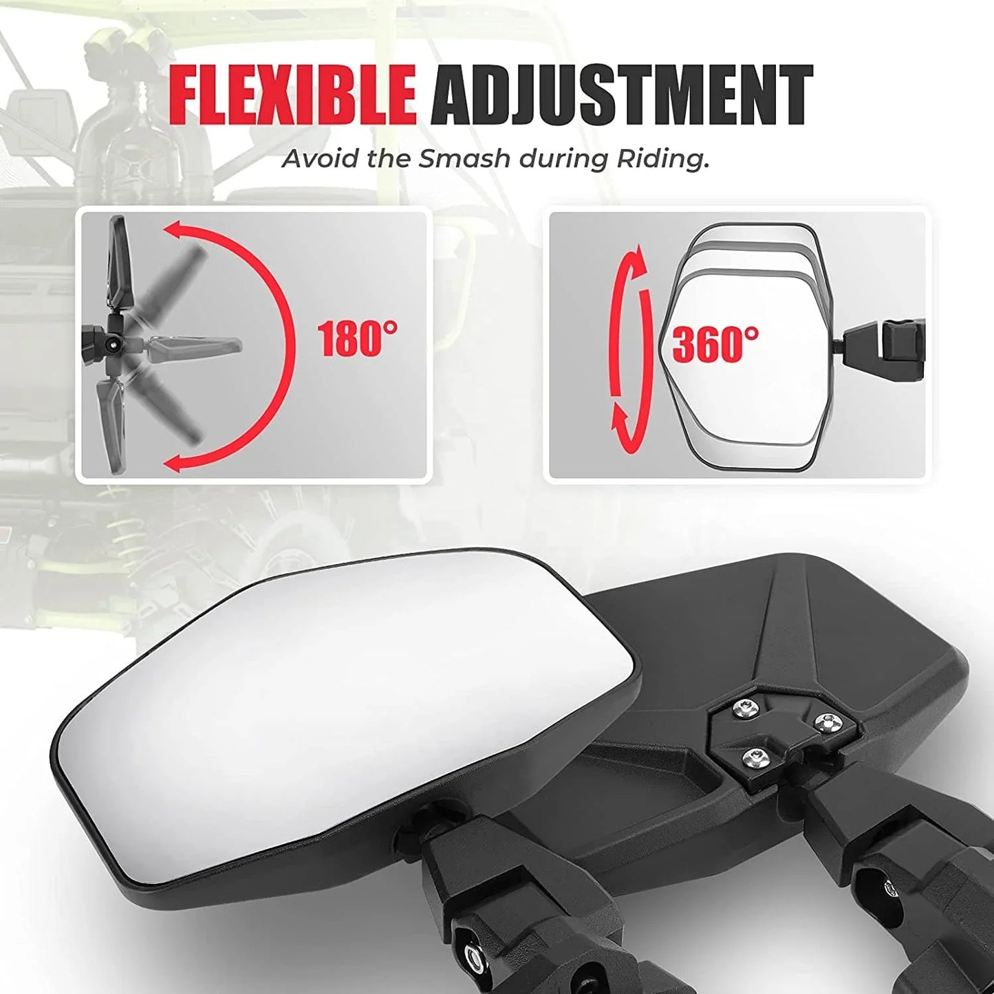 Defender UTV mirrors are made of heavy-duty aluminum construction owned the specification of rugged durability, wear-resistant, corrosion-resistant, which is great for all weather conditions.