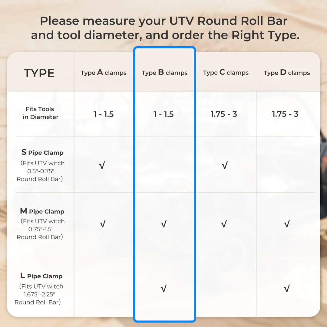 Type B Rubber Tool Clamp Fits 0.75-2.25 Inches Roll Bars