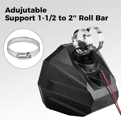 The angle of UTV cage speaker pods can be adjusted to 360 degree, so you can decide where the utv sound system faces and plays. You will enjoy the wonderful music immersivity on your journey.