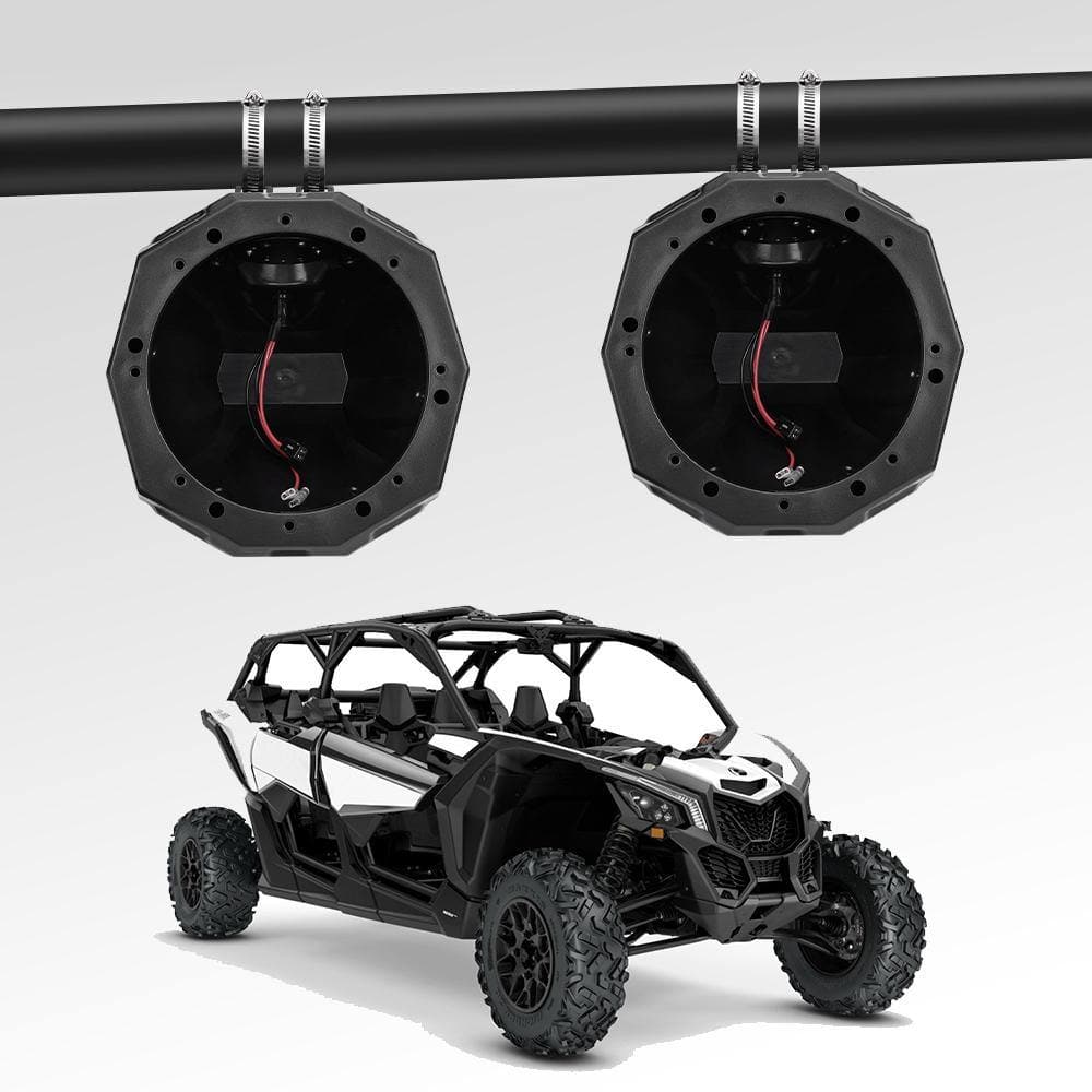 6.5 tower speaker enclosure can be adjusted by the mounting clamps to fit 1.5 to 2" roll cage, it can perfectly fit all UTV.