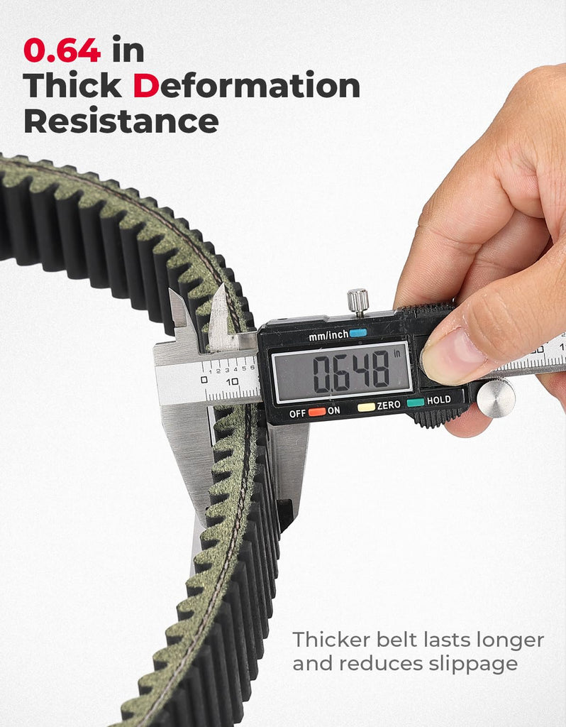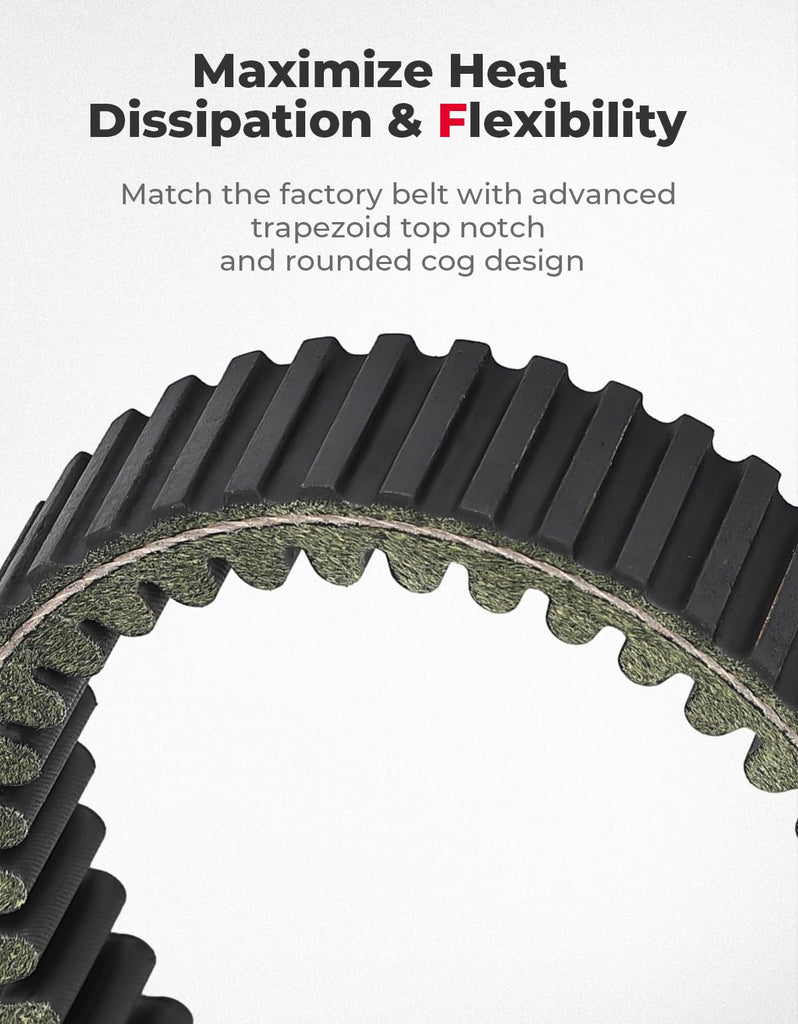 The clutch belt has a tooth surface made of dipped nylon elastic cloth, which allows for precise tooth pitch design and uniform wear. This design ensures that force is evenly distributed and minimizes speed loss. With this advanced technology, you can ride with peace of mind, knowing your UTV is running at its best.