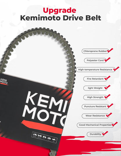 Kemimoto ranger drive belt is made of high-quality chloroprene rubber and aramid string cord for better heat resistance and heat dissipation. The belt can be kept tight enough during high-speed operation without loosening due to high temperature.