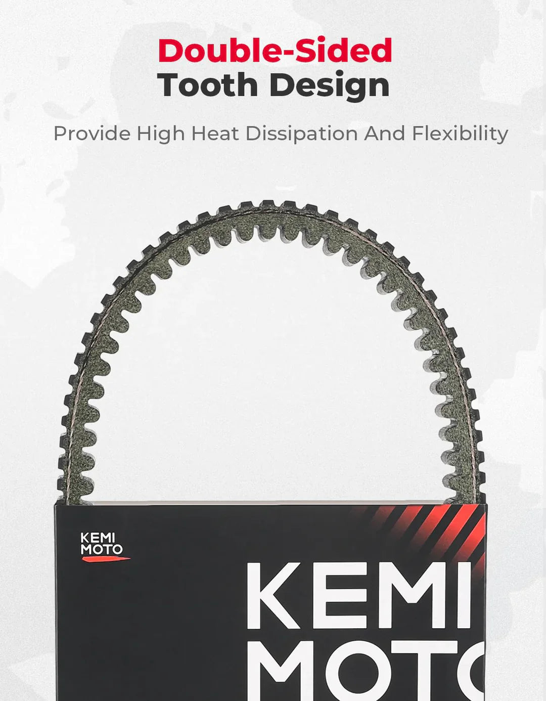 Kemimoto's drive belt is made of high-quality neoprene and advanced polyester cord. It boasts high-temperature resistance, fire retardant properties, lightweight design, and high strength. With stable size, puncture resistance, wear resistance, and chemical corrosion resistance, this belt is exceptionally durable.