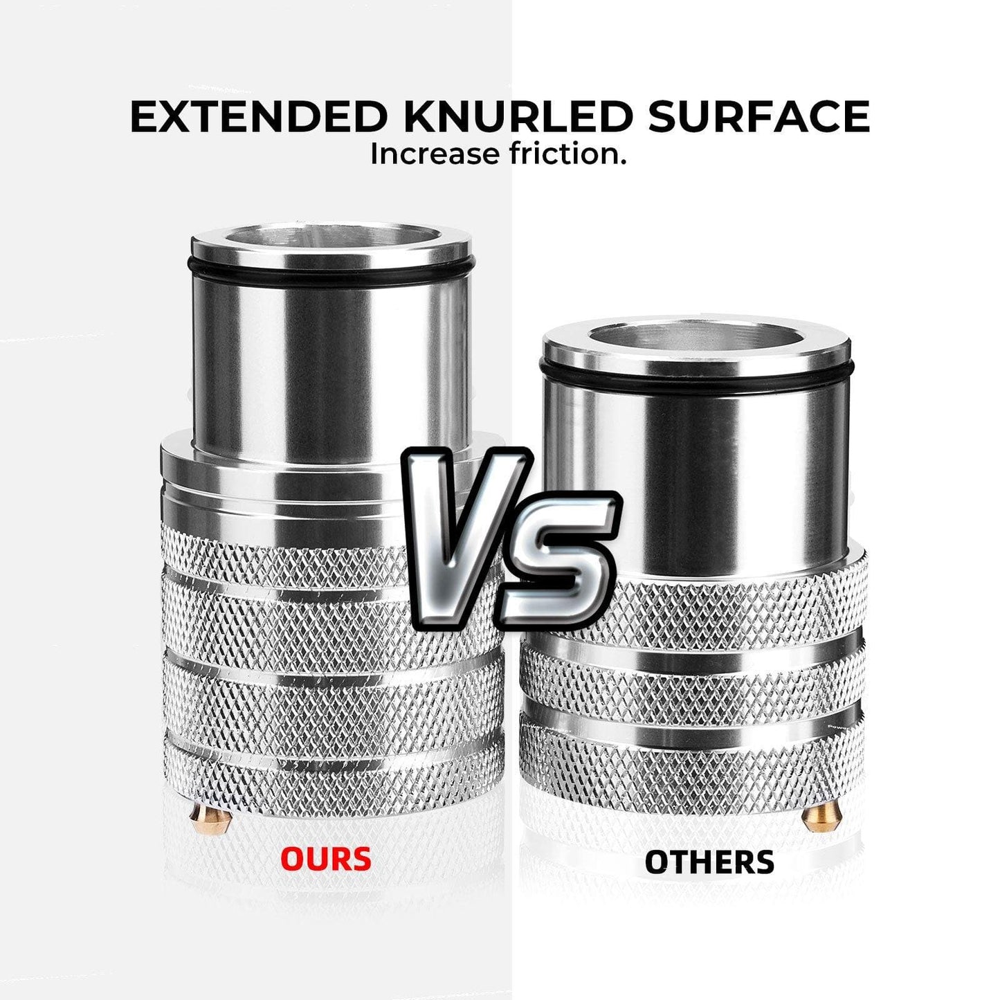 The material of wheel bearing grease is made of aluminum, which is remarkable to resist corrosion.40 mm greaser tool is designed for long-term use. Knurled surface helps you install grease and grab it tightly and take it out easily.