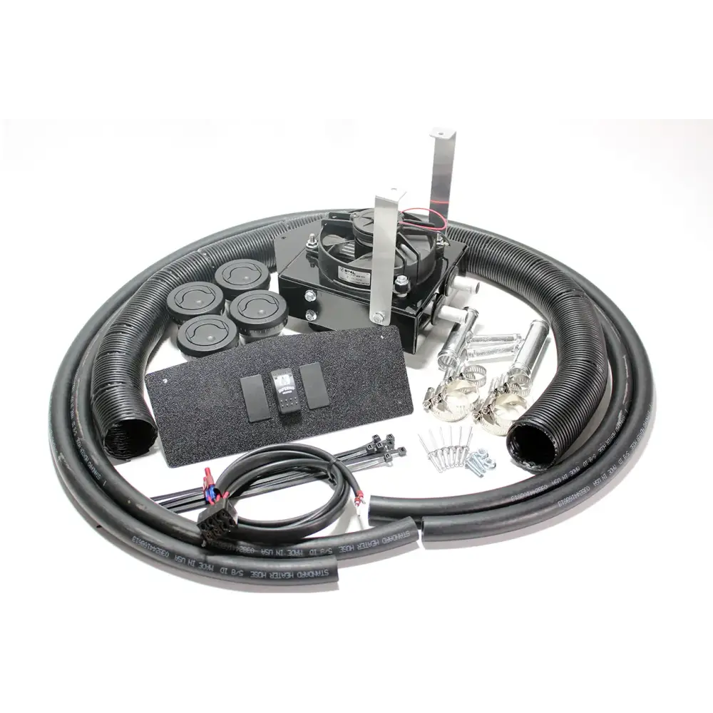 - Includes all necessary components: heater hose, hose splicers, hose clamps, mounting brackets, defrost and floor louvers, ductwork & wiring.